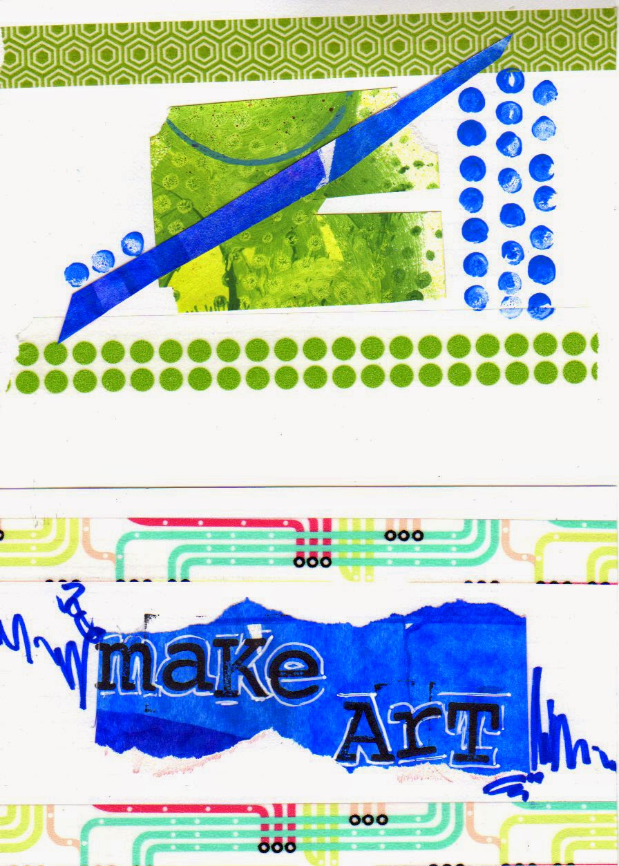 #198 - ICAD 44, 45 - a collage of cardboard, gelli, deli and table scraps; bottom is a doodle - like how it turned out.....